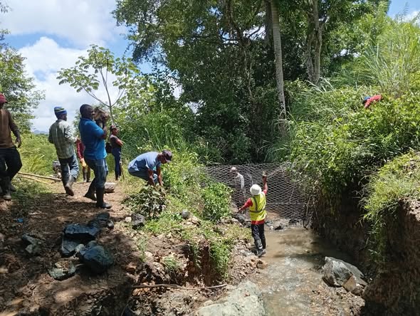 Construcción de gaviones en el camino que comunica con los pinitos-guayajayuvo